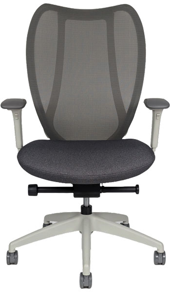 Gray frame, gray mesh back, stock charcoal-gray fabric seat